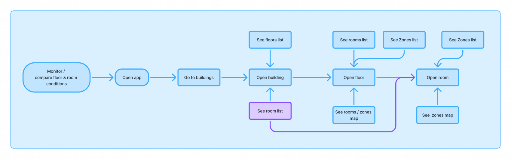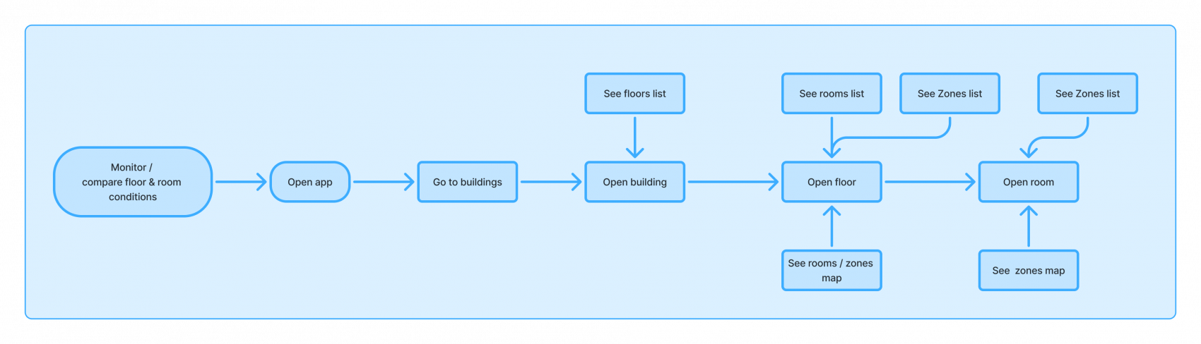 I was asked to redesign the application’s navigation to help facility managers more easily explore and compare room and floor conditions within a building. The goal was to enable cross-floor comparisons of all rooms and to provide clear orientation, so users always know which room and floor they are currently viewing.